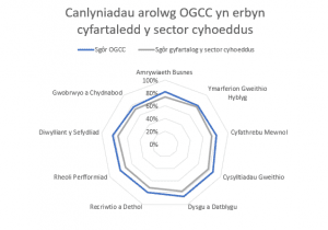 Roedd yr asesiad yn cynnwys 10 maes o’n gwaith. Dyma ganlyniadau’r arolwg: